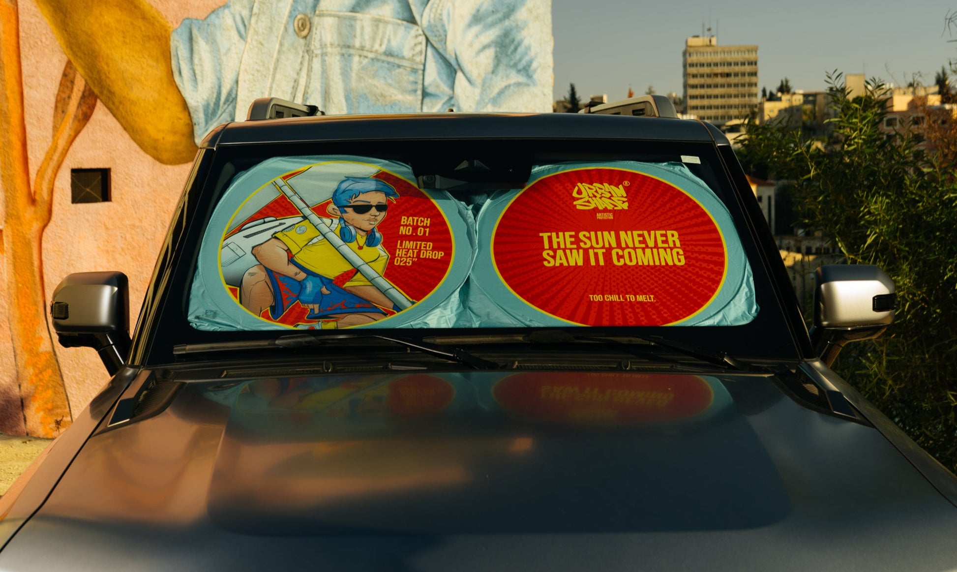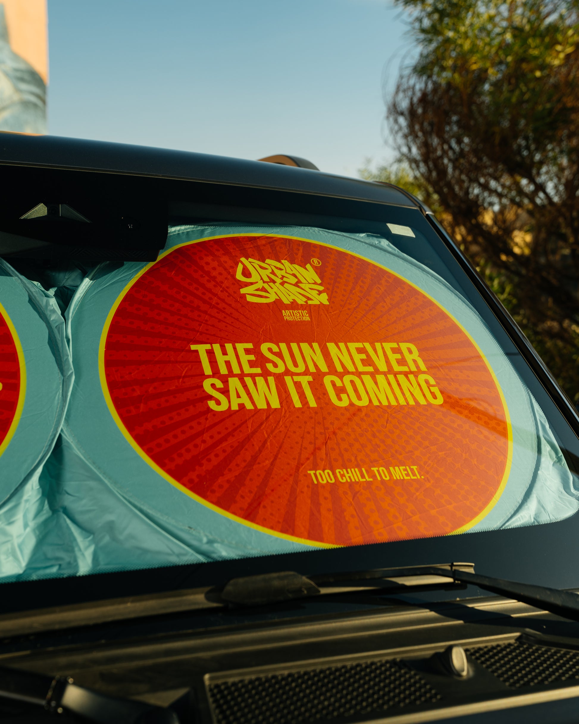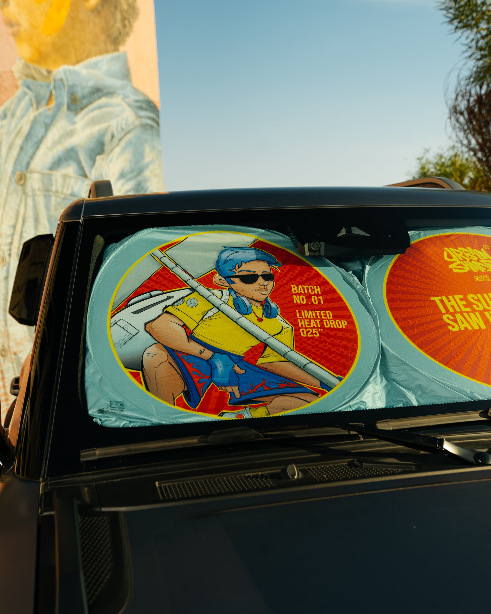 This design combines summer colors, a relaxed attitude, and full sun protection to keep your car shaded and sharp.